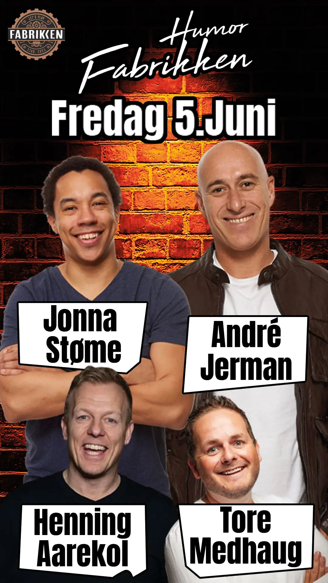 🎤 Klar for en latterkveld? Fredag 5. juni er det premiere på HUMORFABRIKKEN på Fabrikken, Bryne!